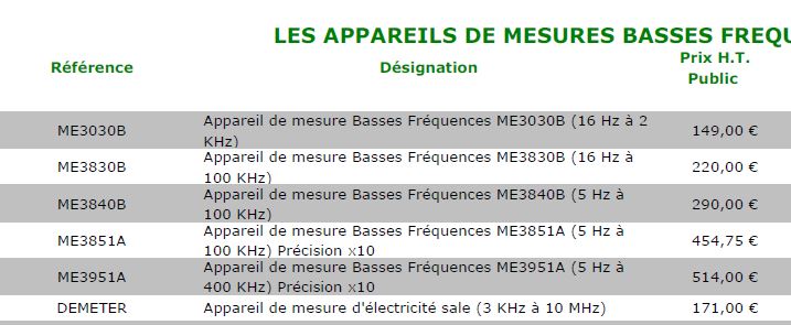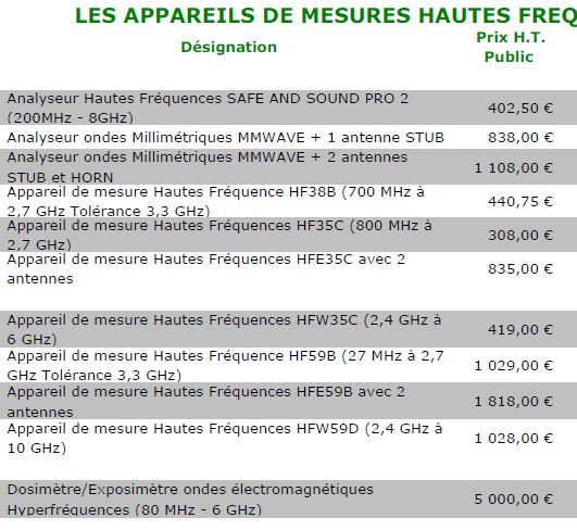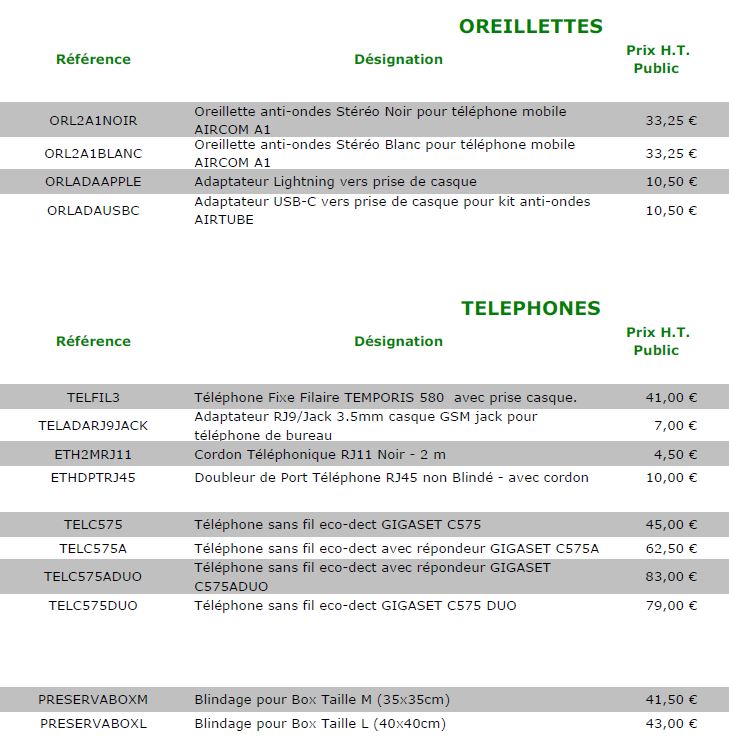 Tarif accessoires